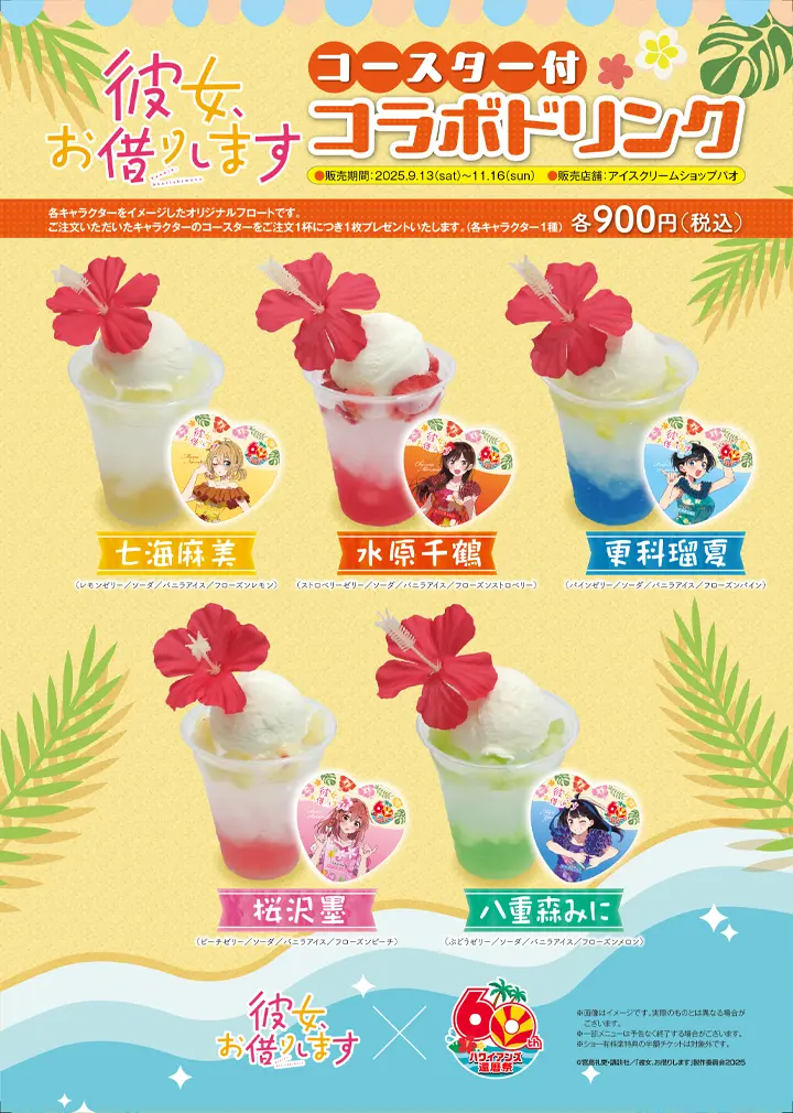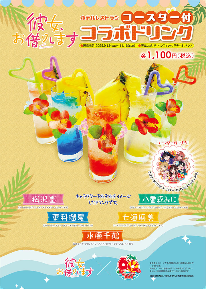 ハワイアンズ60周年を記念し、現在第4期「ハワイアンズ編」が放送中の人気TVアニメ『彼女、お借りします』とのコラボを開催いたします!