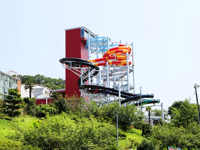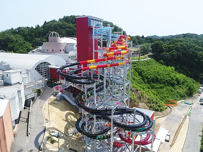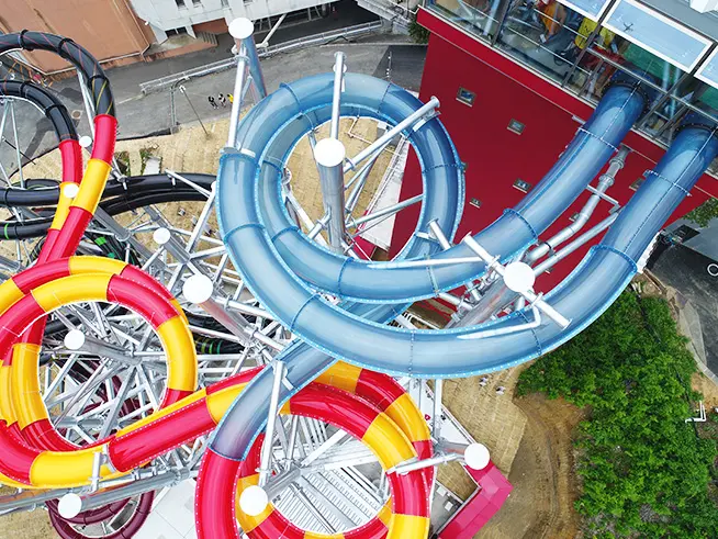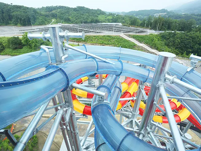 高低差、長さ日本一のボディスライダー「ビッグアロハ」!スライダー内でスピーディーに変化する景観と、スリリングな体験は、まさに異次元旅行です。