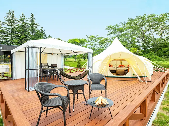 ハワイの大自然を満喫しつつ、ビーチとは異なるアウトドアで楽しめるプライベート空間。夜は360°星空で癒しを。