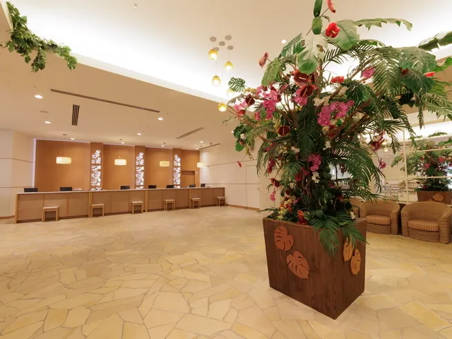 ハワイアンズを代表する大型リゾートホテル。多彩なニーズにお応えし、3つの大浴場やディナーバイキングで癒しと満足感を。