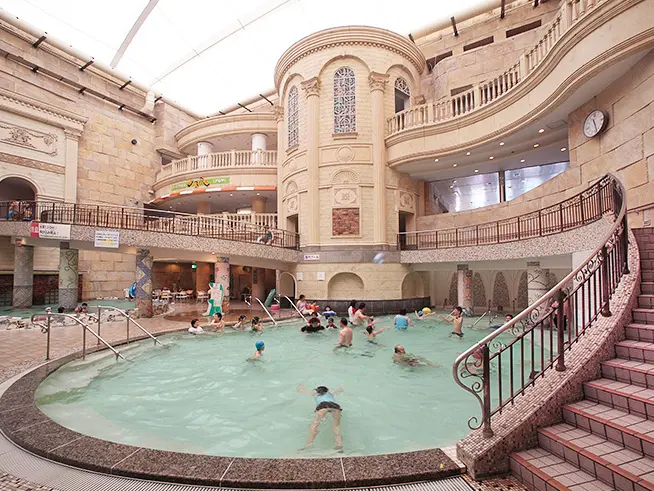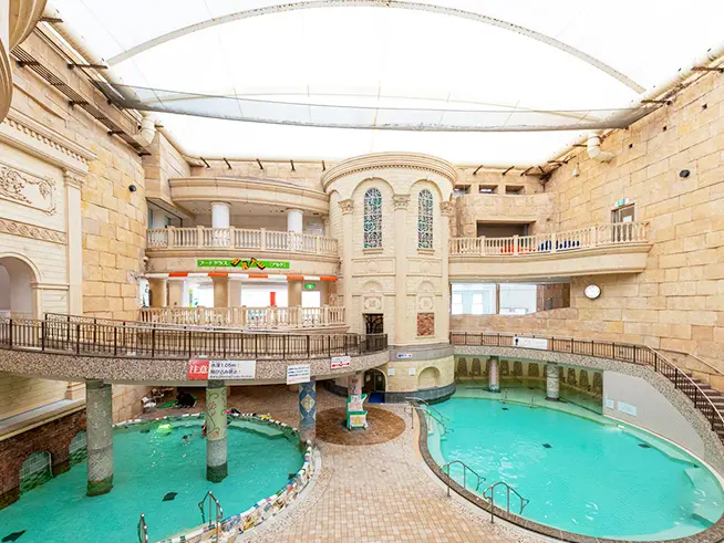 南欧風の吹き抜けドームの温泉公園を水着で楽しみ、12種のバラエティ豊かな温泉浴をハダカでくつろぐ、オシャレなリゾートスパを満喫いただけます。