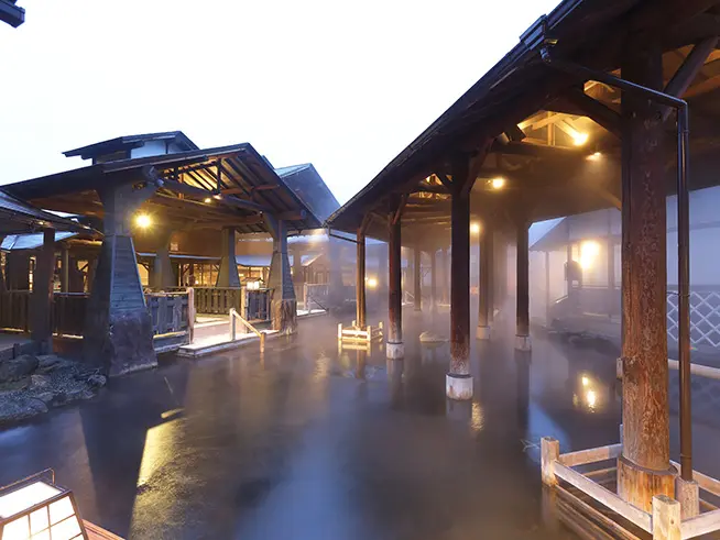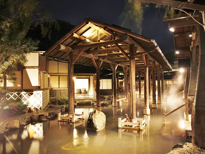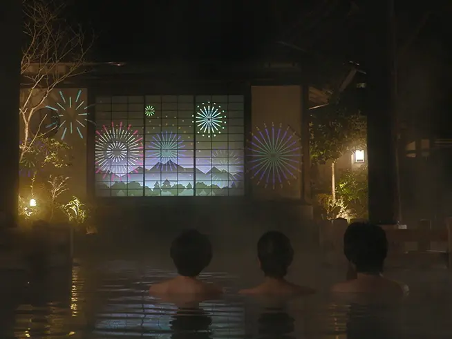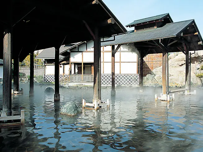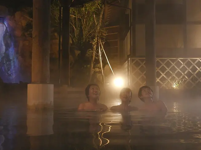 「江戸の湯屋」をモチーフに情緒あふれる雰囲気と、男女合わせた浴槽面積が1,000㎡. という世界最大級の広さが魅力の大露天風呂です。