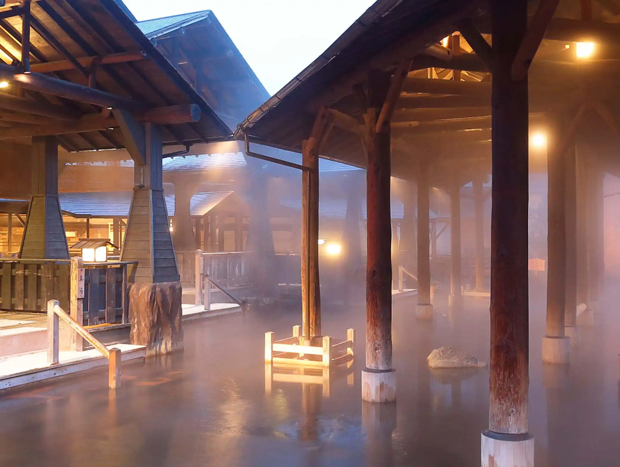 豊富な湧出量を誇るいわき湯本温泉を毎分3.5トンとふんだんに使用しています。みんなで楽しめる水着で入る温泉と、ハダカで入る温泉と分かれています。オススメは世界最大級の浴槽面積の「江戸情緒 与市」と、温泉水を使っているプールです。温泉の新たな可能性を体験してください。