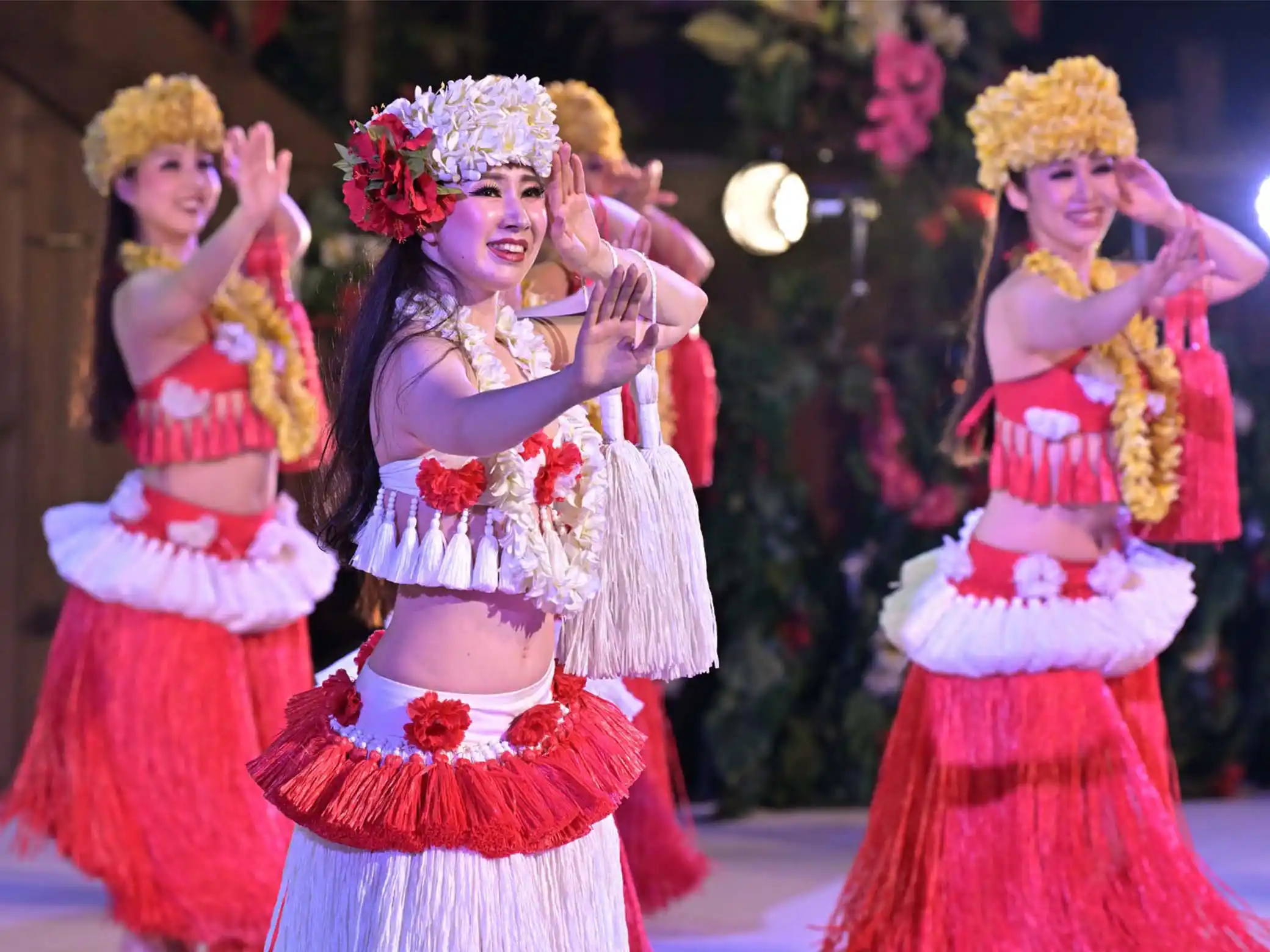 ハワイアンズでは1日3回ショーを開催しています。時間帯で内容の変わるフラや日本で唯一のファイヤーナイフダンスチーム、バンドの生演奏など、圧倒的なスケールで”魅せる"最高のエンターテインメントをお楽しみください。