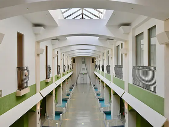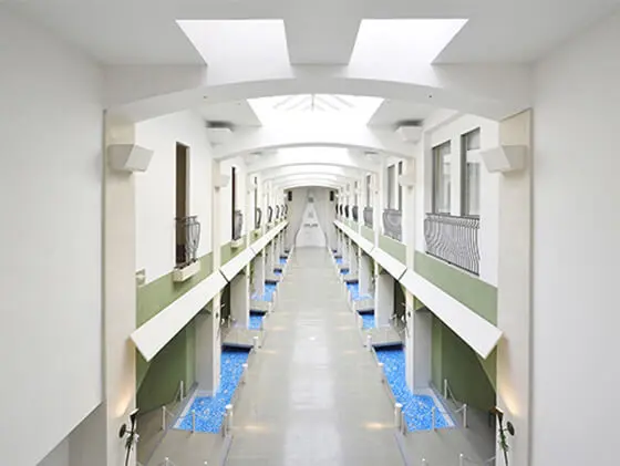 地中海をイメージした静かなホテル。ハワイアンズ中央に位置しているので、ウォーターパークなど各施設への移動もラクラク