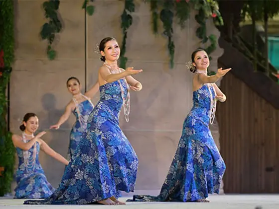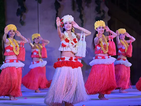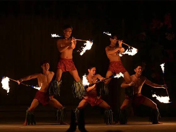 フラにタヒチアンダンスにファイヤーナイフダンス・・・盛りだくさんで感動のショーをお届け