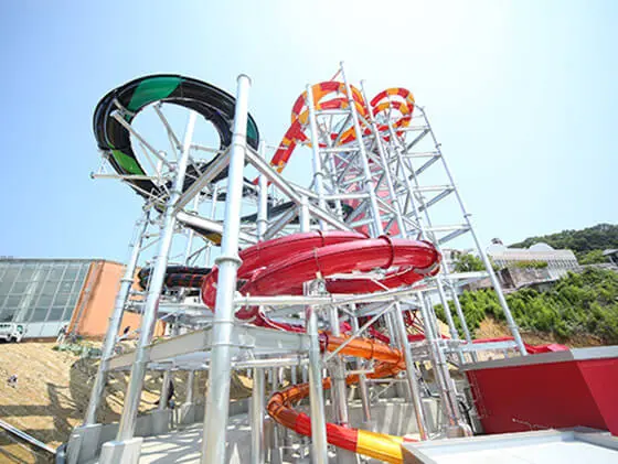 スリル満点!全長130mのウォータースライダーにチャレンジ