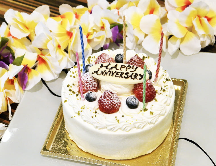 ハワイアンズではお祝い事を彩るケーキや花束、