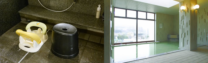 女性の脱衣所にはベビーベッド、洗い場にはベビーチェアの用意がございます。