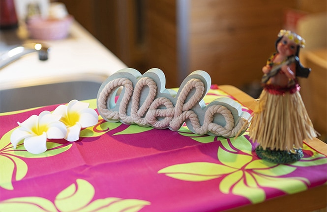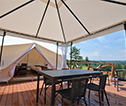 丘の上部に位置するヒルズテントは、マウナヴィレッジを一望できる絶好のロケーション。内装はグランテント同様、こだわりのハワイアンテイストです。