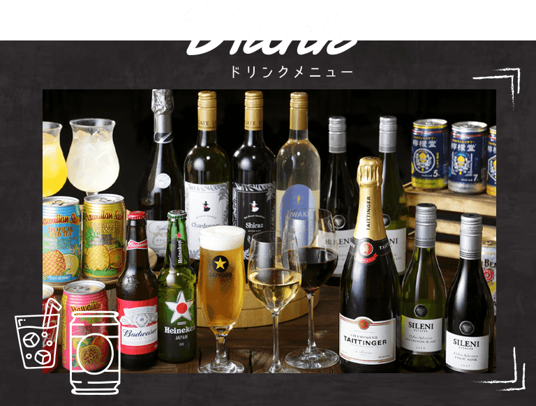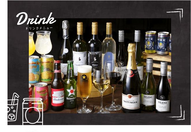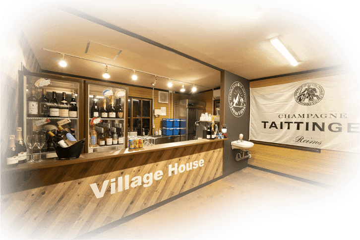 「ヴィレッジハウス」で17:00~22:00の間、シャンパンを含むアルコール類と各種ソフトドリンクをご用意しております。