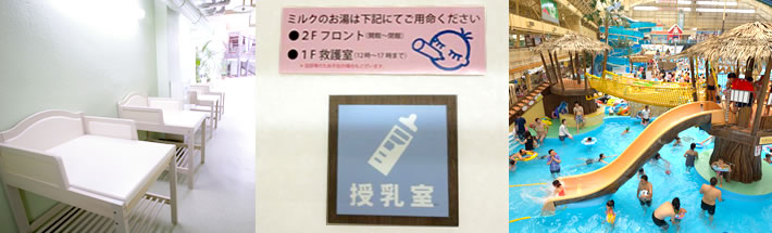 ハワイアンズの授乳室、おむつ替えスペース は、ワイワイオハナ横、および女性用更衣室内にございます。